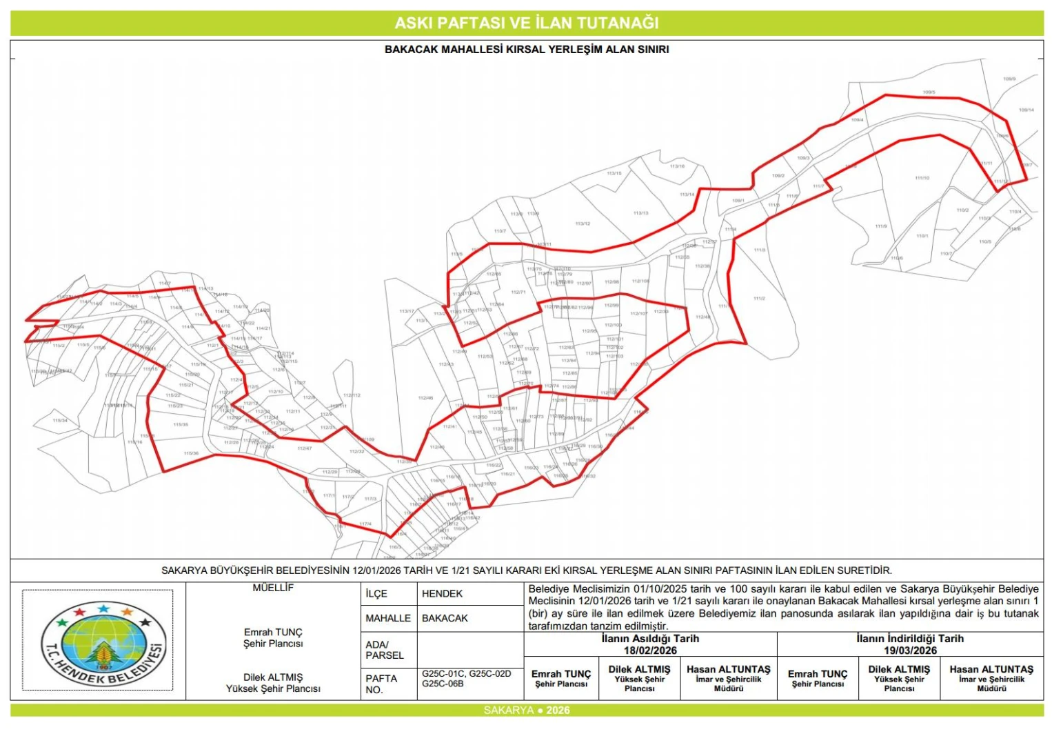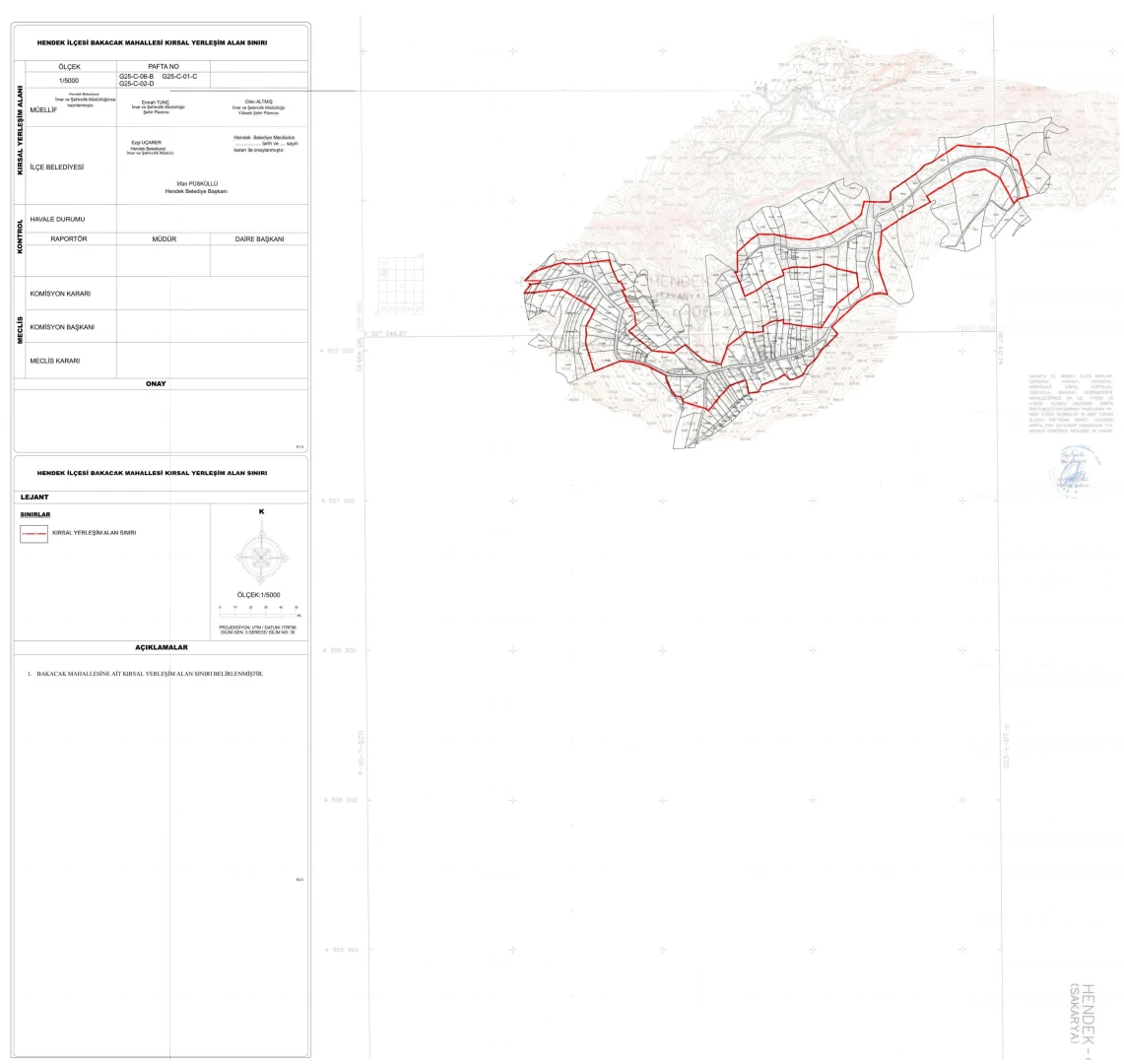 Belediyesi Meclisinin 12/01/2026 tarih, 1/21 nolu kararı ile onaylanan Bakacak Mahallesi kırsal yerleşme