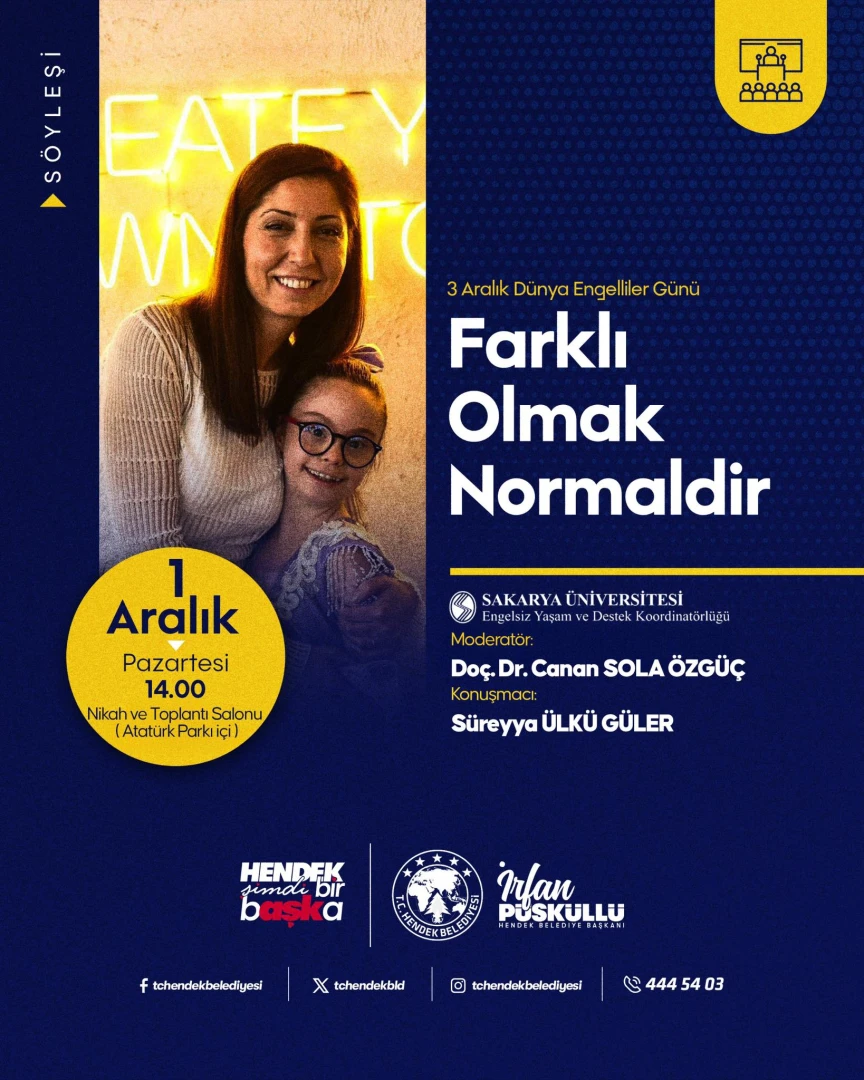 Engelsiz Yaşam Koordinatörlüğü ve Özel Eğitim Öğrenci Topluluğu iş birliği ile 3 Aralık Dünya Engelliler Günü kapsamında düzenleyeceğimiz “Farklı Olmak Normaldir” söyleşisine tüm vatandaşlarımız davetlidir.