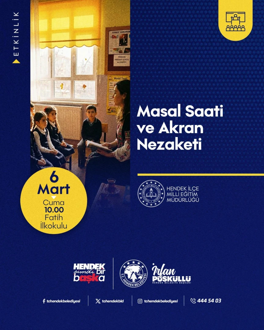 Bu hafta “Masal Saati ve Akran Nezaketi” etkinliğimiz, 6 Mart Cuma günü saat 10.00’da Fatih İlkokulunda, minik öğrencilerle buluşuyor.
