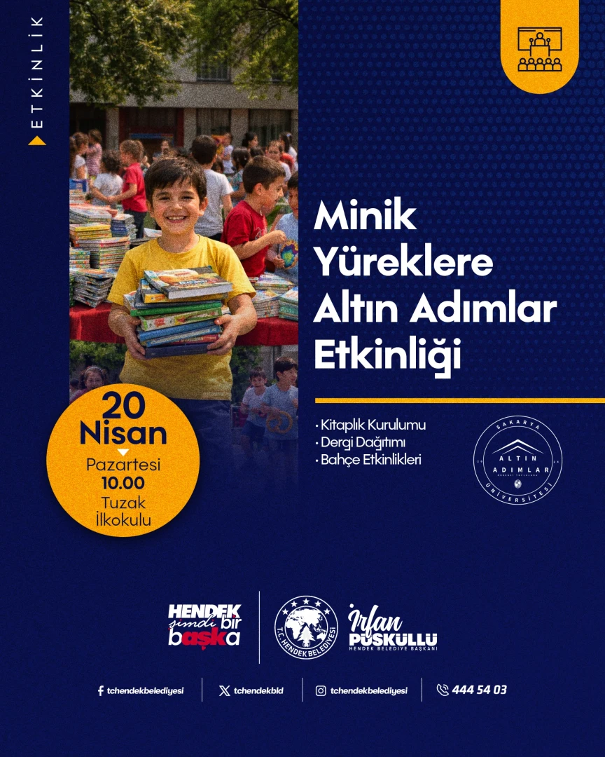 Hendek Belediyesi ile Sakarya Üniversitesi Eğitim Fakültesi Altın Adımlar Öğrenci Topluluğu işbirliğinde Tuzak İlkokulu öğrencilerimize yönelik kitaplık kurulumu, dergi dağıtımı ve bahçe etkinlikleriyle sürecektir.