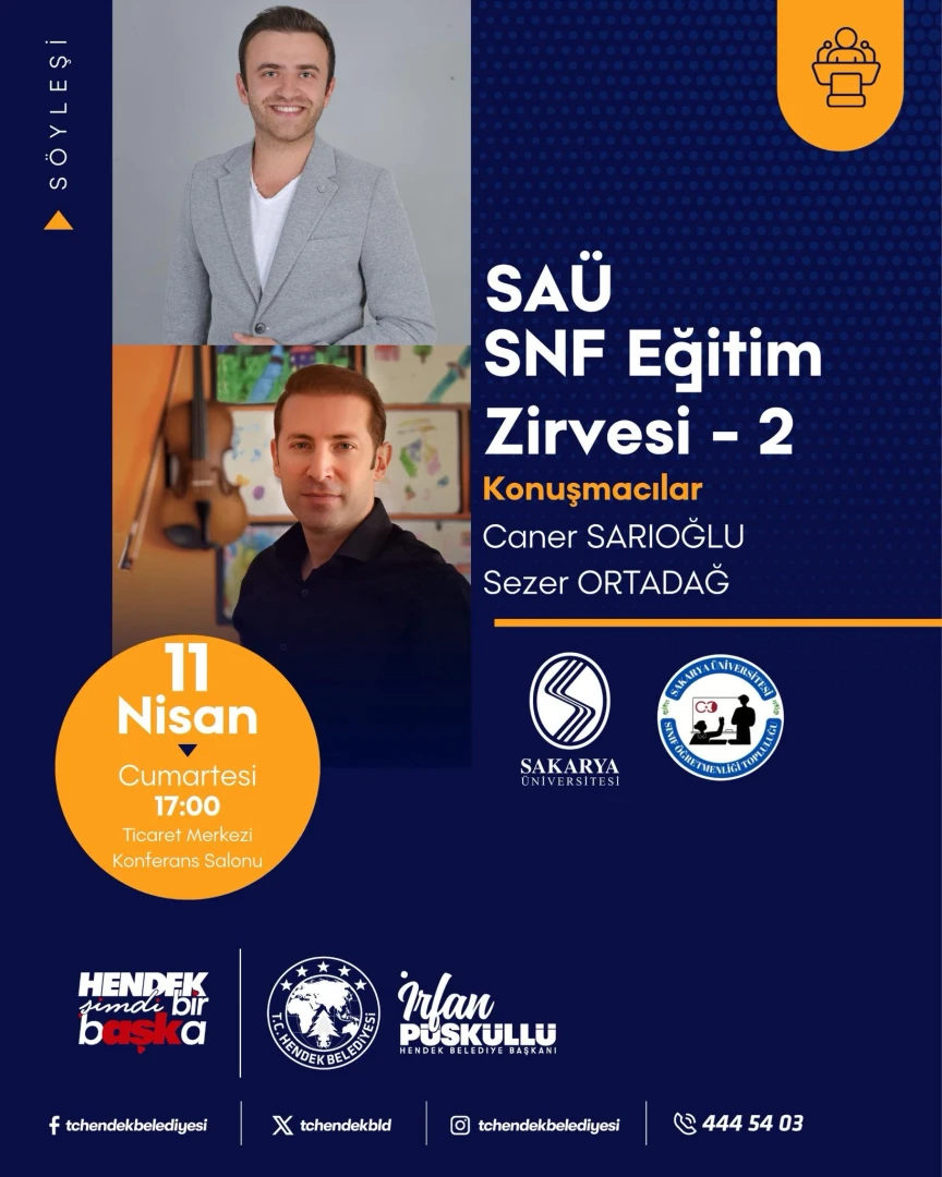 Sakarya Üniversitesi Sınıf Öğretmenliği Topluluğu ile Hendek Belediyesi iş birliğinde düzenlenen SAÜ SNF Eğitim Zirvesi – 2 adlı söyleşi, öğretmen adaylarını ve eğitim alanına ilgi duyan gençleri deneyimli isimlerle buluşturacak.