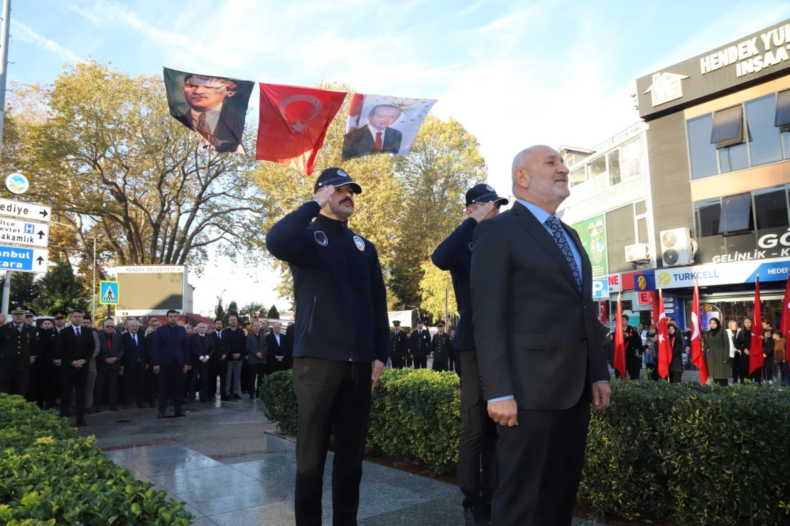 Cumhuriyet Meydanında bulunan Atatürk anıtına çelenklerin sunulması ile başlayan tören programı, Atatürk’ün hayata gözlerini yumduğu saat olan 09.05’te törene katılan İlçe protokolü, esnaflar ve vatandaşlar tarafından saygı duruşunda bulunulması ile devam etti. Hendek’te tam o anda hayat adeta durdu. Saygı duruşunun ardından İstiklal Marşı okunarak tören sona erdi.