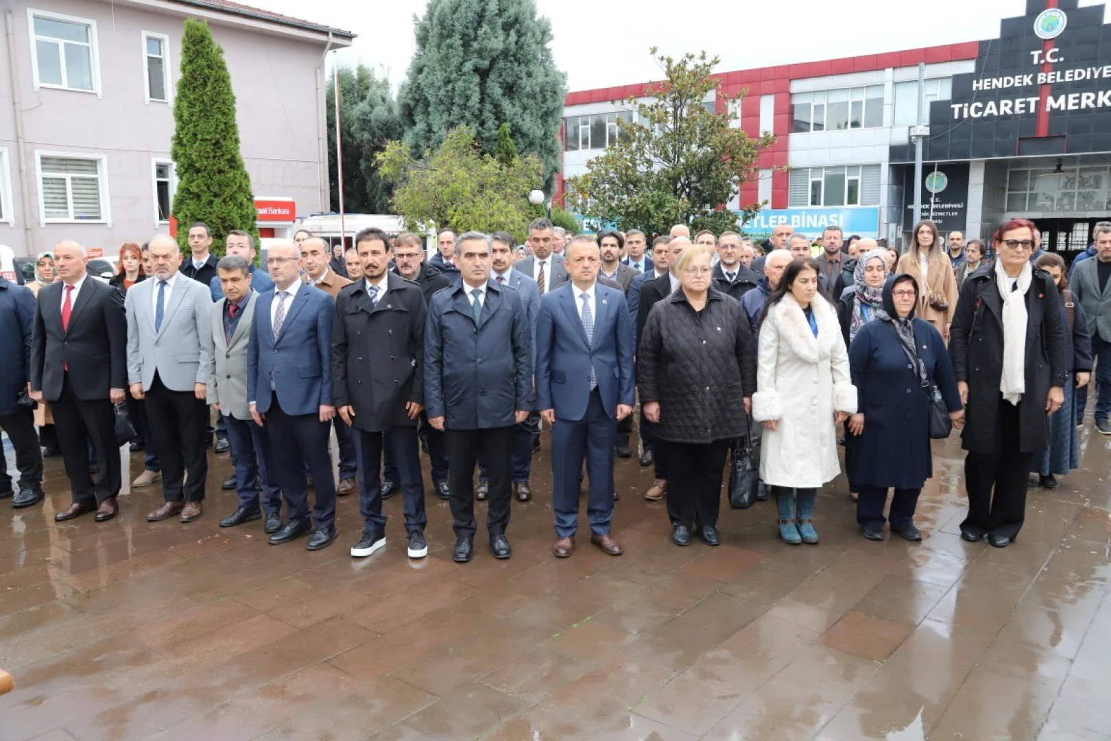 İlçe protokolü, sivil toplum kuruluşları temsilcileri, öğretmen ve öğrencilerin katılımlarıyla Hendek Kaymakamlığı önünde 24 Kasım Öğretmenler günü nedeniyle tören düzenlendi. Düzenlenen törende Atatürk Anıtı’na Hendek İlçe Milli Eğitim Müdürü Murat Çekiçcioğlu tarafından çelenk sunuldu. Saygı duruşu ve İstiklal Marşı’nın okunmasıyla başlayan etkinlik daha sonra Hendek Ticaret Merkezi Konferans salonunda devam etti.