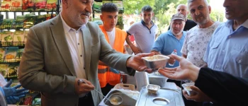 Aşure ikramı sırasında açıklamalarda bulunan Başkan Püsküllü, paylaşmanın, dayanışmanın ve birlik ruhunun önemine dikkat çekerek, “Aşure; sevgiyle karılan, sabırla pişirilen, birlik ve beraberliğimizin simgesidir. Biz de bu güzel geleneği yaşatmaya devam ediyoruz. Aşuremizi paylaşarak gönüllerimizi birleştiriyoruz” dedi.