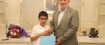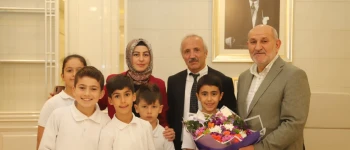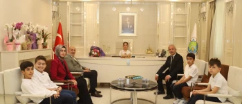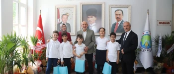 Başkanlık makamında düzenlenen törende Yeniyüzyıl İlkokulu Müdürü Cafer Uçmaz, Sınıf Öğretmeni Ayşe Zengin ve öğrenciler katıldı. Öğrencileri tebrik edip, öğretmenlere teşekkür eden Başkan İrfan Püsküllü, 23 Nisan Ulusal Egemenlik ve Çocuk Bayramını kutlayarak, “Çocuklara armağan edilen tek evrensel bayram olma özelliğini taşıyan 23 Nisan, aynı zamanda Türkiye Cumhuriyeti'nin çocuklarına olan güveninin ifadesidir. Sizler bizim için çok kıymetlisiniz. Toplumumuzun her alanındaki ileri atılımlara öncülük yapacak, kalpleri vatan ve millet sevgisiyle dolu, görev ve sorumluluklarına yürekten bağlı, düşünceli insanlar olarak yetişmeniz en büyük dileğimiz. Derslerinize güzel çalışın bu ülke bu vatan sizlere emanet” dedi.