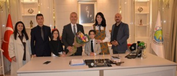 Başkanlık makamında düzenlenen törende Okul Müdürü İbrahim Doğan, Müdür Yardımcısı Elif Bayarçelik, Okul Öğretmenlerinden Sümeyra Dilek Uylas ve Okul Aile Birliği Başkanı Süleyman Kalk’ta katıldı. Öğrencileri tebrik edip, öğretmenlere teşekkür eden Başkan Babaoğlu, 23 Nisan Ulusal Egemenlik ve Çocuk Bayramını kutlayarak, “ Cumhuriyetimizin banisi Ulu Önder Gazi Mustafa Kemal Atatürk’ü, silah arkadaşlarını ve aziz şehitlerimizi bir kez daha saygıyla anıyorum. TBMM’nin açılışının 102.yıl dönümü kutlu olsun” dedi.