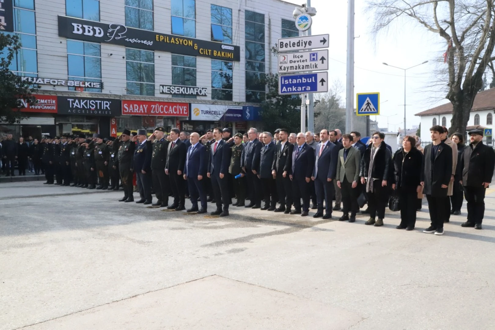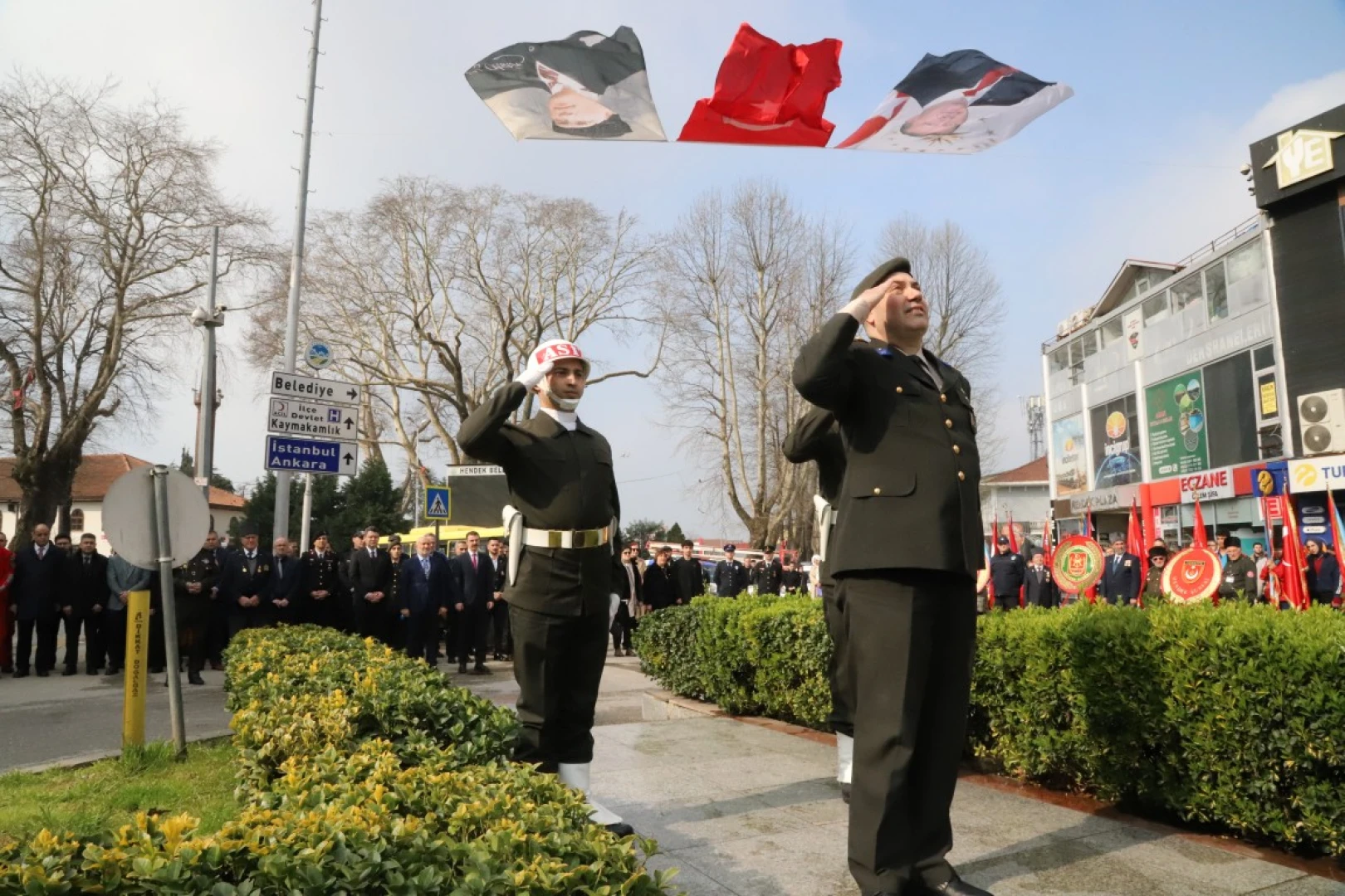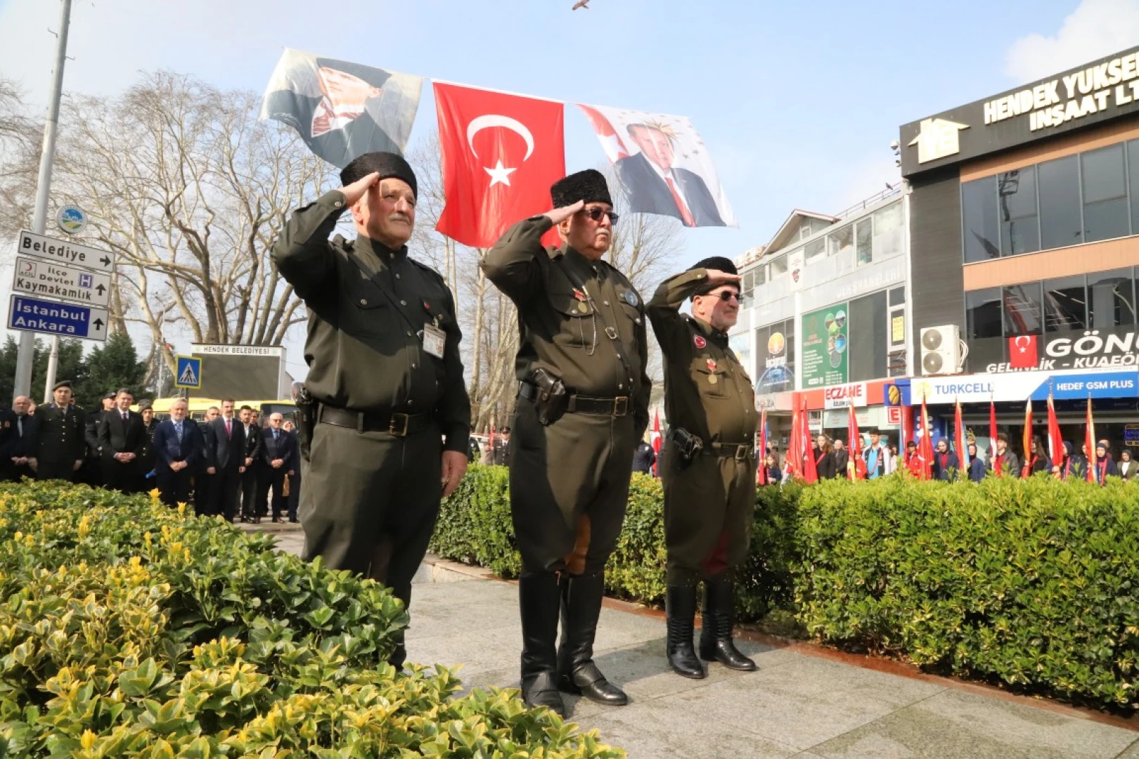 18 Mart Şehitleri Anma Günü ve Çanakkale Deniz Zaferi’nin 111. yıl dönümü Cumhuriyet meydanında Atatürk anıtına çelenk sunumuyla başlayan törene Hendek Kaymakamı Hacı Hasan Gökpınar, Hendek Belediye Başkanı İrfan Püsküllü, Hendek Cumhuriyet Başsavcı Vekili Cihat Arslan, Garnizon Komutanı Müh. Yrb. Ragıp Tolga Güven, Hendek İlçe Emniyet Müdürü Kemal Aydınoğlu, Hendek İlçe Jandarma Komutanı J. Ütğm. Bahtiyar Beycur, Hendek İlçe Askerlik Şubesi Başkan Vekili Asb. Kd. Çvş. Mert Elay, Siyasi Partilerin İlçe Başkanları, Türkiye Muharip Gaziler Derneği Hendek Temsilciliği, Kuvay-i Milliye ve Mücahitler Derneği, Hendek Muhtarlar Derneği, Daire Müdürleri, Öğretmenler, Öğrenciler ve vatandaşlar katıldı. Cumhuriyet meydanında gerçekleştirilen tören çelen sunumu sonrası saygı duruşu ve İstiklal Marşı ile devam etti. Program Hendek İlçe Askerlik Şubesi Başkan Vekili Asb. Kd. Çvş. Mert Elay’ın günün anlam ve önemini belirten konuşmasıyla son buldu.
