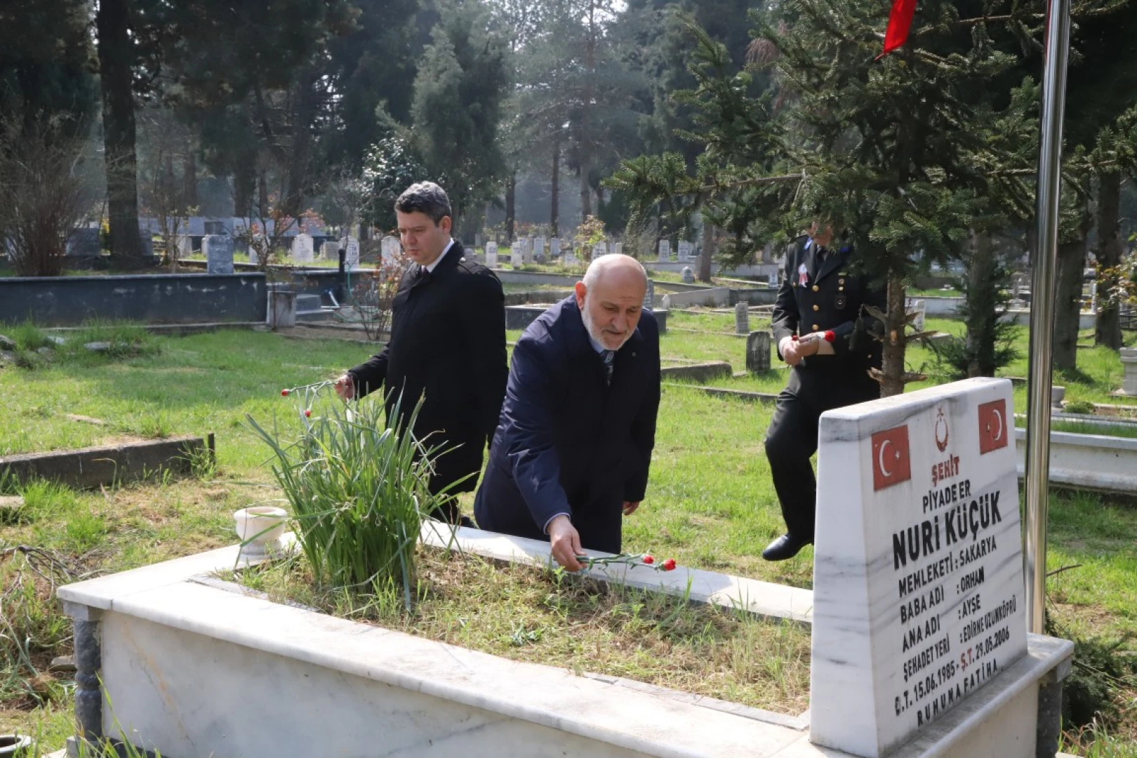 Daha sonra Protokol tarafından Hendek Mezarlığında bulunan şehit mezarları tek tek ziyaret edilerek karanfil bırakılıp dua edildi.