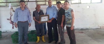 Kesimhane ziyaretlerinde Başkan Püsküllü ve başkan yardımcıları, kasaplara kurallara uygun ve çevre temizliğine katkıda bulundukları için teşekkür belgesi verdi.