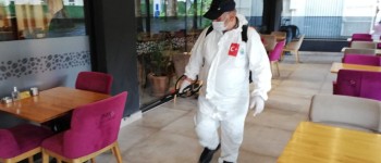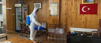 Başkan Babaoğlu’nun talimatı sonrasında belediye ekipleri bu sabah erken saatlerden itibaren dükkanını açan kahvehane, lokanta ve kafeteryalar başta olmak üzere tüm işyerlerini dezenfekte etmeye başladı. Esnaf uygulamadan dolayı son derece memnun olurken, vatandaşlarda verilen bu hizmet nedeniyle Başkan Turgut Babaoğlu’na teşekkür etti. Ekipler tüm işyerlerinde dezenfektan harekatına başladı ve çalışmalarını sürdürüyor.