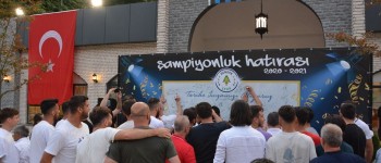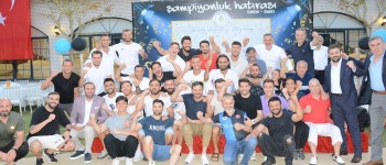 Konuşmaların ardından toplu fotoğraf çekimi yapılırken, oluşturulan “Şampiyonluk Hatırası” alanına Başkan Babaoğlu, Kulüp Başkanı Karabulut, yöneticiler, futbolcular, aileleri ve geceye katılan herkes kalıcı olarak sergilenmek üzere imzasını attı.