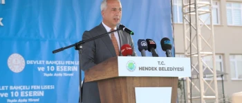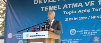 Ardından törenin açılış konuşmasını Hendek Belediye Başkanı Turgut Babaoğlu yaptı. Başkan Babaoğlu, “Devlet Bahçeli Fen Lisesi temel atma ve 10 eserin toplu açılış törenimizi teşriflendiren, bizleri bu mutlu günümüzde yalnız bırakmayan tüm herkese teşekkür ediyorum. Göreve başladığımız günden bu güne temelinde insan olan, gönül ve üretken belediyeciliği esas alan, sürekli kalkınmayı hedefleyen, geleceği güçlü temeller üzerine inşa eden bir takım çalışmasıyla yolumuza devam ediyoruz. Hayata geçirdiğimiz projelerle ve yaptığımız çalışmalarla ilçemize hizmet edebilmenin her daim haklı gurur ve mutluluğunu yaşıyorum. Bunların arasında olan Zeki Cömert Parkı Aile Çay Bahçesi, Kazımiye Köprüsü ve meydanı, 7 muhtarlık binası, Alparslan Türkeş Parkı, Köprübaşı Park ve 112 Acil İstasyonu, Yenimahalle dev alt yapı projesi, Yeşilyurt İş Merkezi, Çamlıca Doğalgaz projesi, HAKOM Geçici Sağlık Merkezi, Ulaşım Eylem Planı 1 ve 2.etaplarının bugün açılışını gerçekleştiriyoruz” dedi.