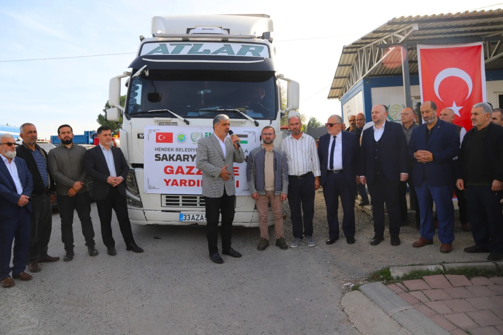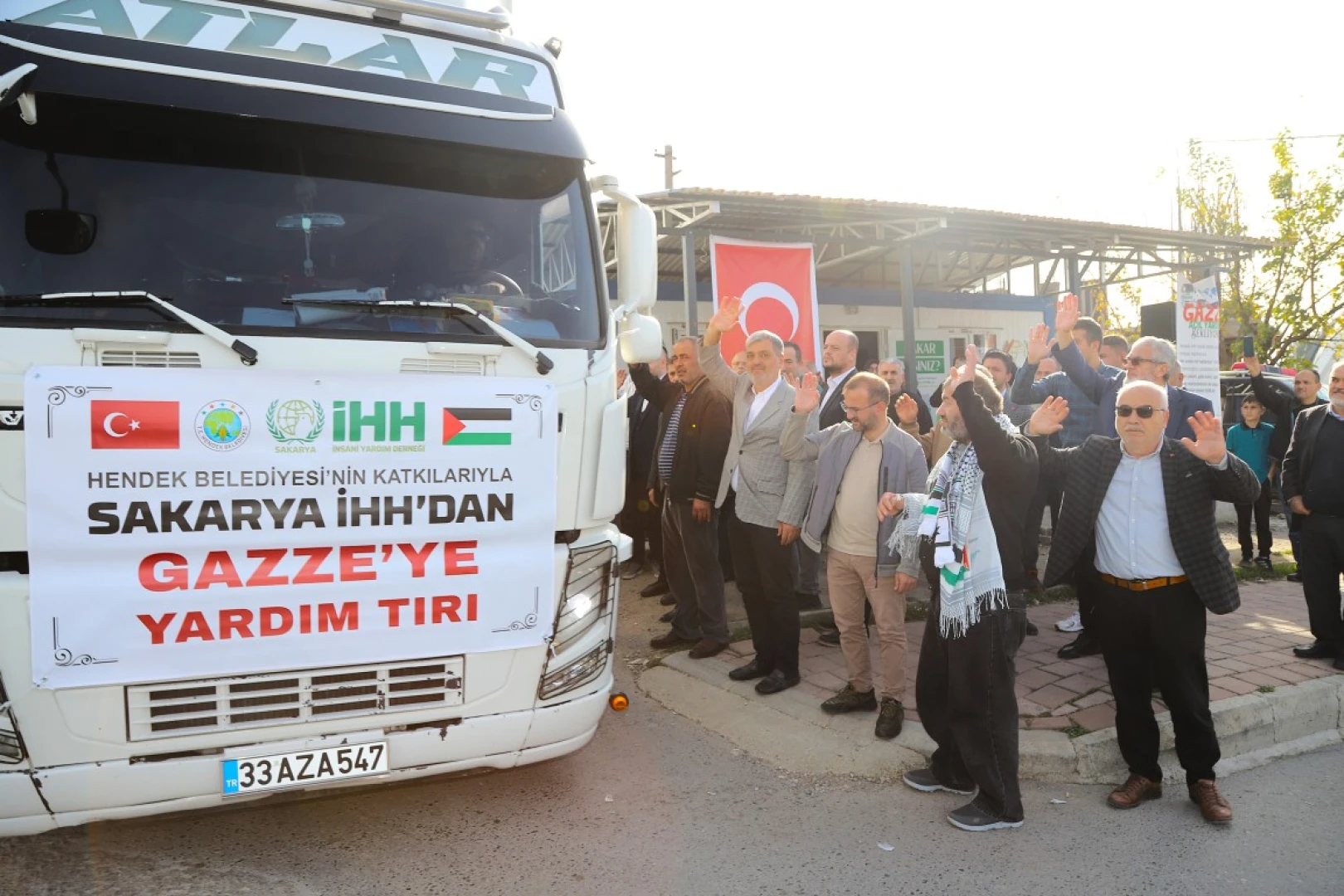 Hendek Belediyesi’nin destekleriyle SAKARYA İHH tarafından Gazze için hazırlanan bir TIR dolusu yardım malzemesi, Cuma namazının ardından Rasimpaşa Camii yanında bulunan İHH Hendek İlçe Temsilciliği önünde yapılan dua ile ilçeden uğurlandı. Programa, Hendek Belediye Başkan Yardımcısı Bilal Deniz, AK Parti Hendek İlçe Başkanı Adem Öz, İHH Hendek Temsilcisi Cemil İşnel, belediye meclis üyeleri, daire müdürleri ve yardımsever Hendek halkı katıldı.