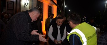 tarafından vatandaşlara cami çıkışında gül suyu ve lokum ikram edildi.
