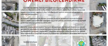 Kıymetli Hendekliler; Belediyemiz tarafından hayata geçirilen Ulaşım Eylem Planı çalışmaları kapsamında Ali Gaffar Okkan Caddesi-Prof.Dr.Ayhan Kızıl Caddesi kesişimde kavşak düzenlemesi yapılacak olup, Halk Bank-eski hastane arasında yol genişletme çalışması başlayacaktır.