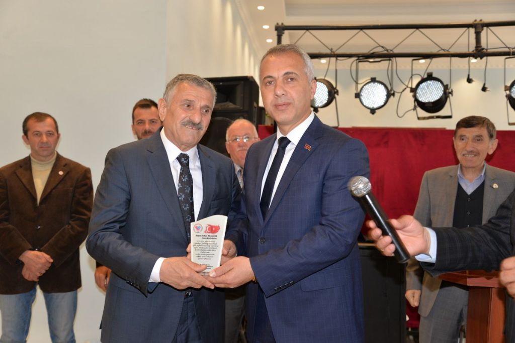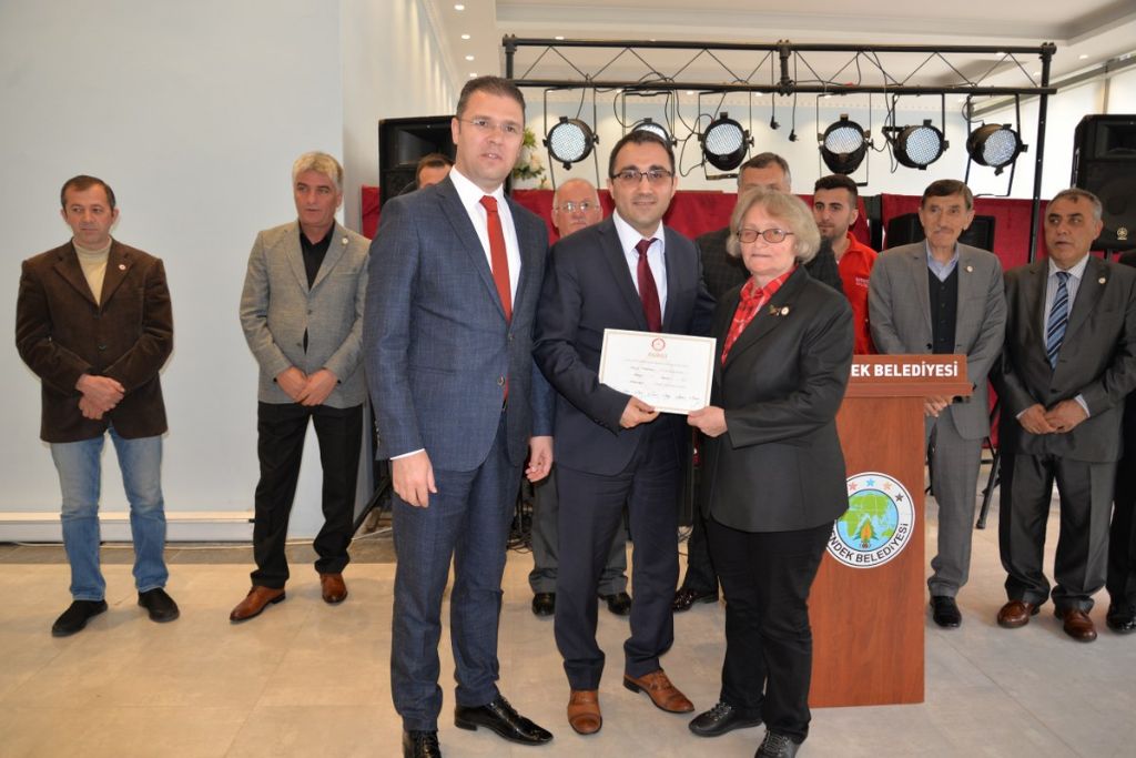 Hendek Belediye Başkanı Turgut Babaoğlu da, muhtarları tebrik ederek “ 31 Mart 2019 Yerel seçimlerinde Belediye Başkanlığımız halkımız tarafından tescillendi. Sizlerle ilk defa bir toplantıya katılıyorum. Benimle birlikte seçilen siz değerli muhtarlarımıza, geçmiş dönemde hizmet eden muhtarlarımıza ve en önemlisi görevi devraldığımız değerli Başkanımız İrfan Püsküllü ’ye ve onun vekili olarak aramızda bulunan Mahmut Nedim Alkan’a Hendek’imize yapmış oldukları güzel hizmetlerden ve katkılarından dolayı teşekkür ediyorum “ diyerek, Muhtarlar Derneği adına Başkan Vekili Mahmut Nedim Alkan’a teşekkür plaketi verdi.