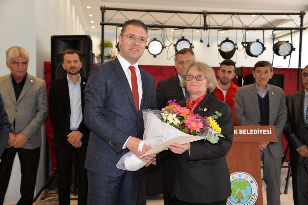 Program sonunda Muhtarlar Derneği Başkanı Dursun Emin Kula, Hendek Belediye Başkanı Turgut Babaoğlu’na hayırlı olsun dileklerinde bulunarak çiçek takdim etti.