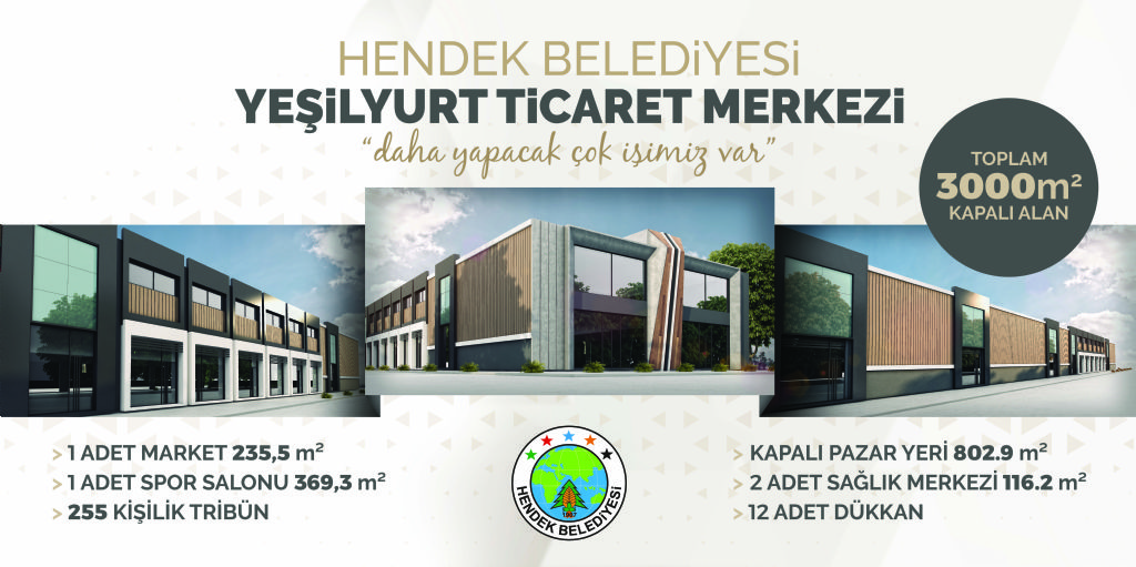 Hendek Belediyesi, merkeze kazandırdığı projelerle şehrin prestijine katkı sunarken merkeze yeni bağlanan mahallelere de ihtiyaçlar doğrultusunda hizmetler kazandırmaya devam ediyor. Toplam 3 bin metre kare kapalı alandan oluşan Pazar yeri (850 m2), 12 adet dükkan, 2 adet sağlık ocağı, 1 adet market, spor salonu, 255 kişilik tribün, bay ve bayan lavaboları yer aldığı Yeşilyurt Ticaret Merkezi’nin dış çelik montajı tamamlandı, ara kat çelik montajı devam ediyor.